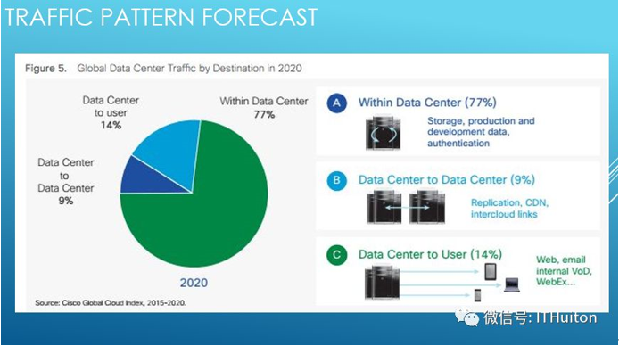 总的来说,随着现代数据中心里虚拟化技术和软件三层架构的广泛采用,数据中心内部的流量已经和过去发生了很大的变化,